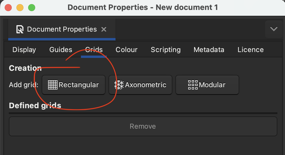 This will bring up a popup window where we want to select the Grids tab and then we want to click on the Rectangular button twice to add two rectangular grids.