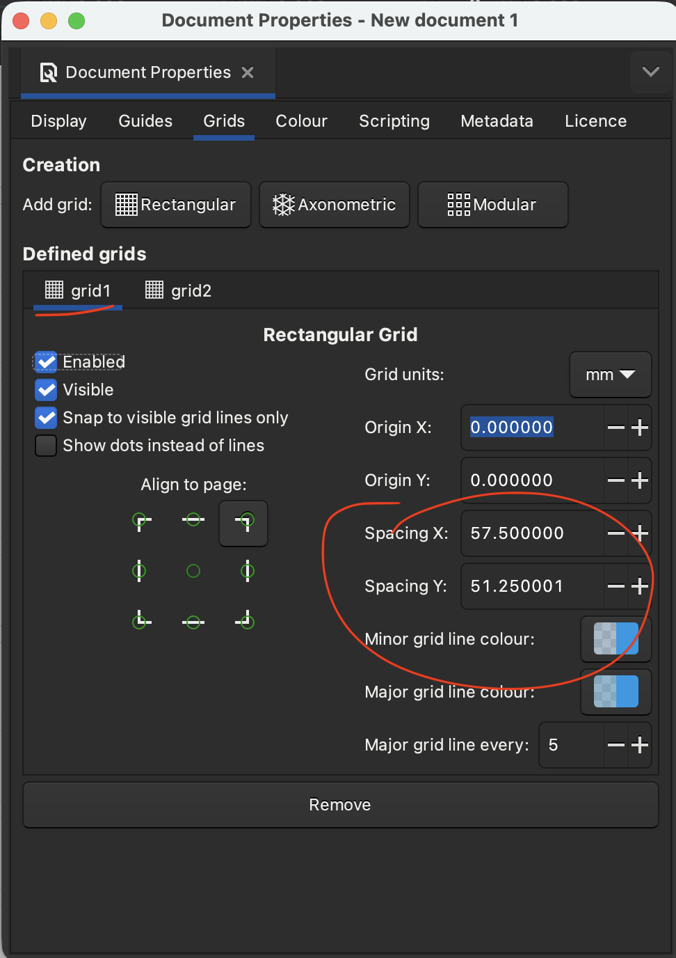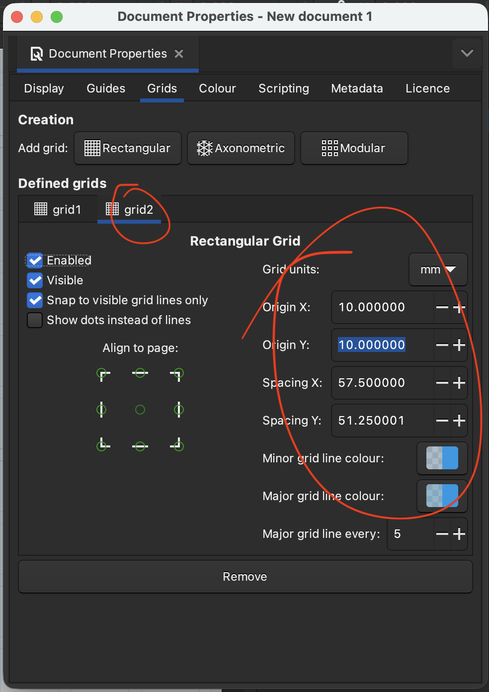 We enter both of these numbers for both grids and then add in a 10mm origin to x and y for grid2 so that we include the gutter and alley between the two grids.